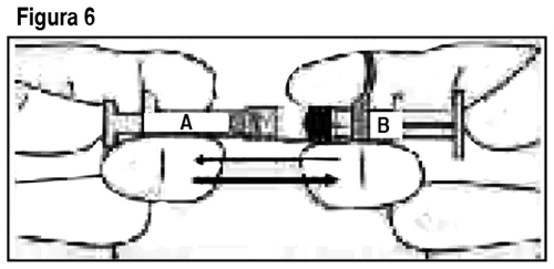 USO: Método de preparación y administración: Ver Tabla Importante: Deje que el producto alcance temperatura ambiente antes de usarlo. Una vez mezclado, el producto debe administrarse dentro de los 30 minutos. Siga las instrucciones para garantizar la preparación adecuada de Eligard® antes de la administración: Eligard® se envasa en 2 bandejas termoformadas. Cada caja contiene: 1 jeringa estéril (Jeringa A), prellenada con el sistema de distribución Atrigel®. 1 jeringa estéril (Jeringa B) prellenada con polvo de acetato de leuprolide. 1 vástago del émbolo blanco largo para uso con la Jeringa B. 1 aguja estéril o 1 aguja estéril de seguridad. Paquetes de desecantes. 1. En un lugar limpio, abra todos los envases exteriores y extraiga el contenido. Elimine los paquetes de desecantes. 2. Retire el vástago del émbolo corto azul con el tapón gris adherido de la Jeringa B y deseche (Figura 1). Gire el vástago del émbolo largo, blanco, de reemplazo, dentro del tapón primario gris que queda en la Jeringa B (Figura 2). Ver Tabla 3. Desenrosque el protector transparente de la Jeringa A (Figura 3). Elimine el protector gris de goma de la Jeringa B (Figura 4). Ver Tabla 4. Acople bien las dos jeringas presionando y girando hasta que queden aseguradas (Figura 5). Ver Tabla 5. Inyecte el contenido de líquido de la Jeringa A en la Jeringa B que contiene acetato de leuprolide. Mezcle bien el producto empujando el contenido hacia atrás y adelante entre las jeringas para obtener una suspensión uniforme (Figura 6). Una vez que se mezcla por completo, la suspensión tendrá un aspecto de color marrón claro a marrón (Eligard® 7.5 mg) o incoloro a amarillo claro (Eligard® 22.5 mg y 45 mg). Por favor tenga en cuenta que el producto debe mezclarse tal como se describe. No lo agite, ya que NO se mezclará adecuadamente. Ver Tabla 6. Luego del mezclado, mantenga las jeringas en forma vertical con la Jeringa B abajo. Las jeringas deben mantenerse acopladas de manera segura. Vierta todo el producto mezclado en la Jeringa B (jeringa corta, ancha) oprimiendo el émbolo de la Jeringa A y retirando suavemente el émbolo de la Jeringa B. Desenrosque la Jeringa A mientras continúa empujando el émbolo de la Jeringa A (Figura 7). Nota: en la formulación quedarán pequeñas burbujas de aire. Esto es aceptable. Ver Tabla 7. Mantenga la Jeringa B en posición vertical. Quite el protector de la base del cartucho de la aguja estéril haciéndolo girar (Figura 8). Coloque el cartucho de la aguja en el extremo de la Jeringa B (Figura 9) empujando y haciendo girar la aguja hasta que esté ubicada firmemente. No haga sobregirar la aguja en la jeringa porque puede salirse la tapa. Retire el protector transparente del cartucho de la aguja antes de la administración (Figura 10). Ver Tabla [Corresponde al kit de Eligard de uso único de un sistema de mezcla de 2 jeringas con aguja estéril]. 8. Mantenga la Jeringa B en posición vertical. Abra el paquete de la aguja de seguridad estéril quitando la solapa de papel y retire la aguja de seguridad (Figura 11). Asegure la aguja al extremo de la Jeringa B sosteniendo la funda protectora de la aguja y girando la jeringa en el sentido de las agujas del reloj para colocar completamente la aguja (Figura 12). Retire la funda protectora de la aguja antes de la administración (Figura 13). Ver Tabla [Corresponde al kit de Eligard® de uso único de un sistema de mezcla de 2 jeringas con aguja de seguridad estéril]. Procedimiento de administración: Importante: Deje que el producto alcance temperatura ambiente antes de mezclarlo. Una vez mezclado, el producto debe administrarse dentro de los 30 minutos. Ver Tabla 1. Como lugar de aplicación, elija un lugar en el abdomen, parte superior de los glúteos u otro lugar con suficiente tejido subcutáneo que no posea pigmentación, nódulos, lesiones o vello en exceso. Como se puede variar el lugar de inyección para la inyección, elija un área que no se haya utilizado recientemente. 2. Limpie el lugar de inyección con un algodón embebido en alcohol. 3. Utilizando el pulgar y el índice de su mano no dominante, tome y abulte el área de la piel en torno al lugar de inyección. 4. Utilizando su mano dominante, inserte la aguja rápidamente con un ángulo de 90º en la superficie de la piel. La profundidad de la penetración dependerá del volumen de tejido subcutáneo y de la longitud de la aguja. Una vez insertada la aguja, suelte la piel con su mano no dominante. 5. Inyecte el fármaco empujando lenta y sostenidamente. Presione el émbolo hasta que la jeringa esté vacía. 6. Retire la aguja rápidamente en el mismo ángulo de 90º utilizado para la inserción. [El paso 7 aplica solamente al kit de uso único de Eligard® de un sistema de mezcla de 2 jeringas con aguja de seguridad estéril]. 7. Inmediatamente después de retirar la aguja, active la cubierta de seguridad en la aguja usando un pulgar (Figura 14) o dedo (Figura 15) o superficie plana (Figura 16) para empujarla hasta que cubra por completo la punta de la aguja y quede fija en su lugar. El sonido de un clic verifica la posición de bloqueo de la cubierta de seguridad (Figura 17). Ver Tabla 8. Deseche todos los componentes de manera segura en un recipiente apropiado para material con riesgo biológico.