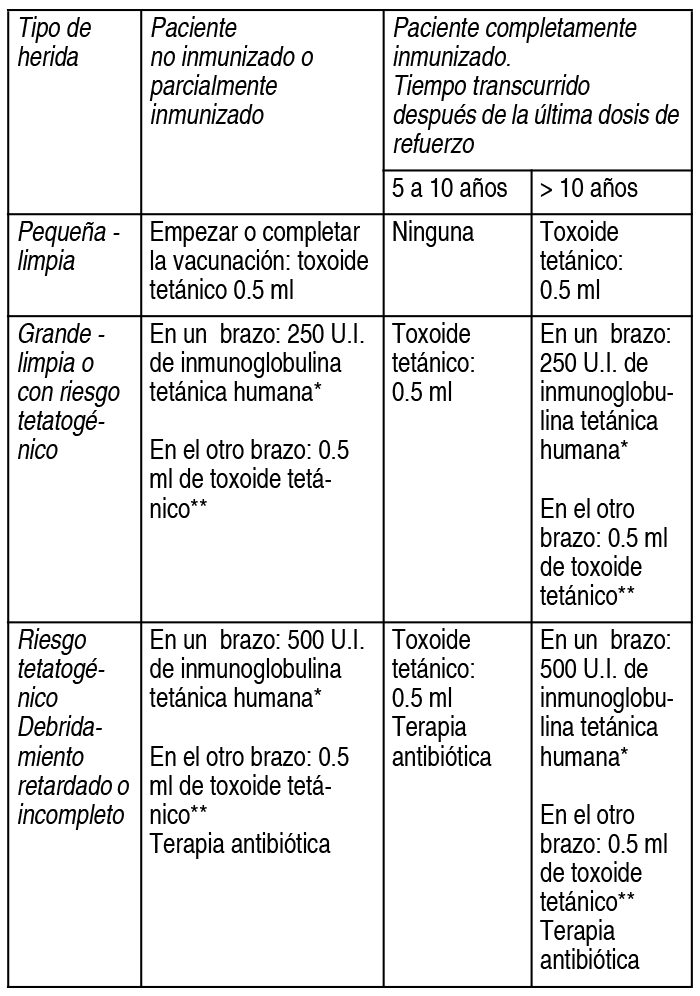 COMPOSICION: Cada dosis de 0.5 ml contiene: Principios Activos: Toxoide Diftérico Purificado Inactivado con Formaldehído y Adsorbido ≥ 2 U.I.* como mínimo. Toxoide Tetánico Purificado Inactivado con Formaldehído y Adsorbido ≥ 20 U.I.* como mínimo. Excipientes: Hidróxido de Aluminio Hidratado; SoluciónTampón**. * Límite inferior de confianza (P= 0.95).**Composición del tampón (por litro): Cloruro Sódico, Fosfato Disódico Dihidratado, Fosfato Monopotásico, Agua para Preparaciones Inyectables. ACCION: Inmunización activa contra difteria y tétanos. INDICACIONES: Esta vacuna se indica para adultos a partir de los 18 años en los siguientes casos: Refuerzos sistemáticos contra la difteria y el tétanos. El contenido en toxoide diftérico se reduce a 1/10° de la dosis normal con el fin de disminuir al máximo los riesgos de reacción grave de hipersensibilidad. Inmunización primaria. Exposición a un riesgo tetanígeno tras una herida, si es necesario un refuerzo diftérico. El calendario de vacunación en los sujetos menores de 18 años, debe seguir las recomendaciones nacionales. Sin embargo, esta vacuna antidiftérica y antitetánica adsorbida (Imovax DT Adulto) podrá administrarse como vacunación de refuerzo en el niño mayor de 10 años, siguiendo las recomendaciones nacionales. DOSIS: Para los refuerzos sistemáticos, la administración de una dosis única de 0.5 ml debe practicarse cada 10 años. Para la inmunización primaria, es conveniente administrar 3 dosis sucesivas de 0.5 ml con 1 mes de intervalo. Para la profilaxis en las personas expuestas a un riesgo tetanígeno, conviene ajustarse al esquema recomendado que se resume a continuación: Ver Tabla Modo de administración: Debido a que esta vacuna es adsorbida, es preferible administrarla por vía I.M. con el fin de disminuir al máximo las reacciones locales. Los sitios recomendados son la cara anterolateral del muslo o del brazo. La vía S.C. profunda también puede emplearse. Por el contrario, la vía intradérmica no debe utilizarse. Agitar antes de la inyección, hasta obtener una suspensión homogénea. La eliminación del medicamento no utilizado y de todos los materiales que hayan estado en contacto con él, se realizará de acuerdo con la normativa local. PRESENTACIONES: Envase conteniendo 1 jeringa prellenada por 0.5 ml. |